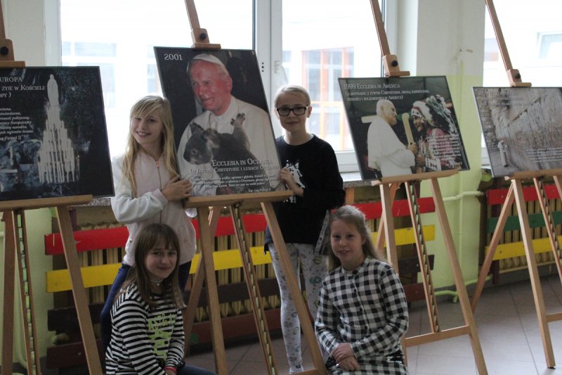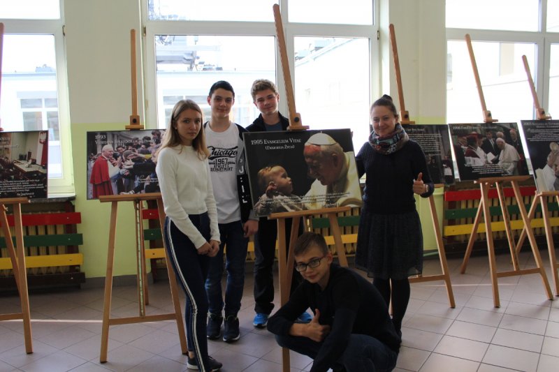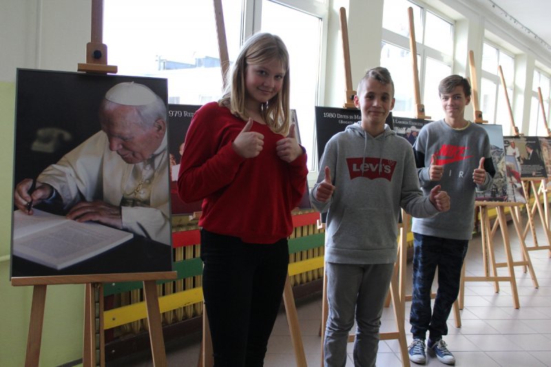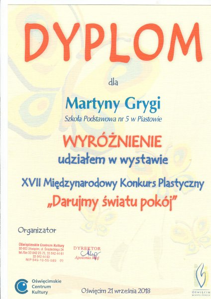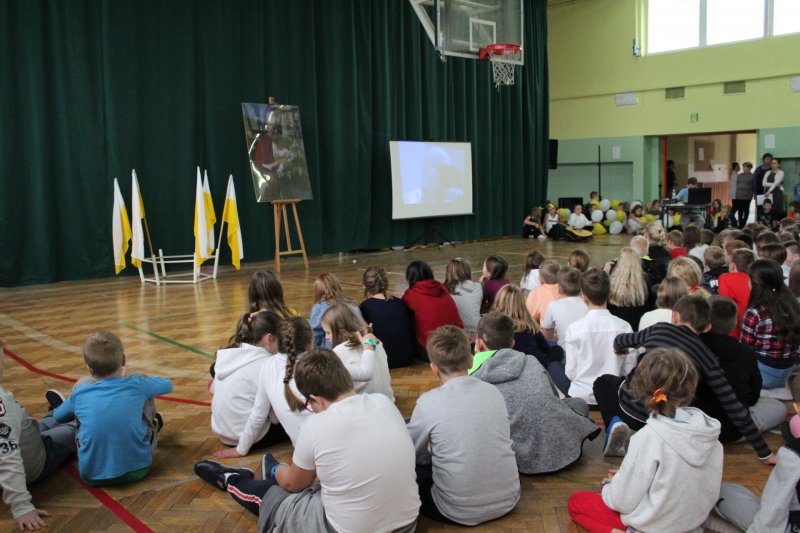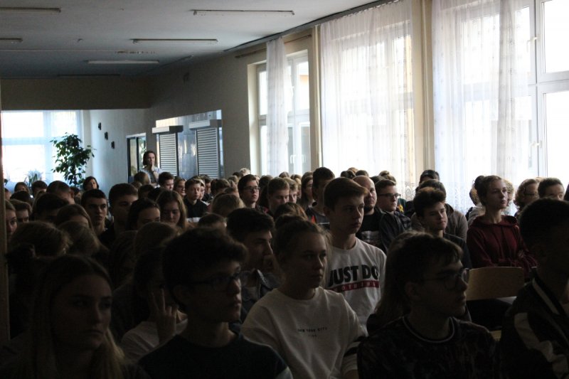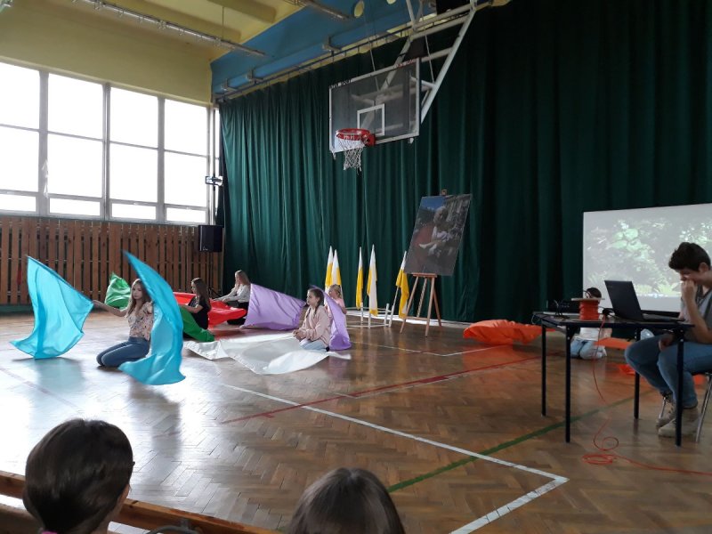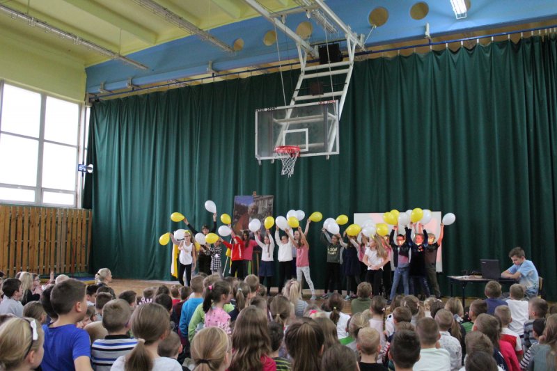 W ramach szkolnego konkursu dla klas pt.”Dziękuję! Nie biorę!” realizowanego w tym roku, klasa VIIIc przygotowała akcję informacyjną nt. cyberprzemocy. Michał przygotował prezentację multimedialną i wraz z Julką pouczyli klasy piąte, jak bezpiecznie poruszać się w sieci oraz przedstawili konsekwencje cyberprzemocy. Lekcja była częścią programu realizowanego w tym roku w szkole „Bezpieczni w sieci”.