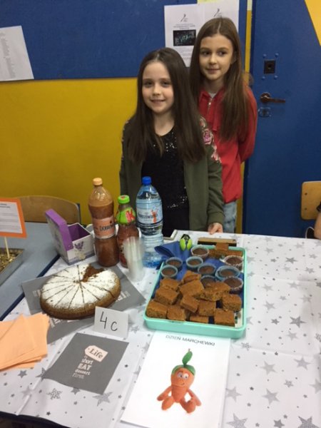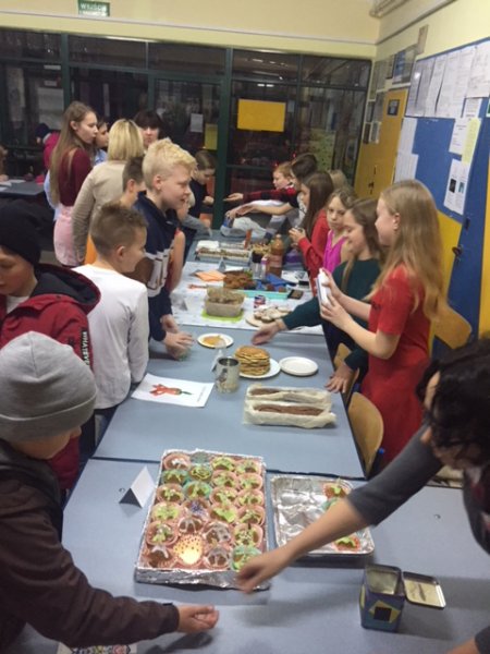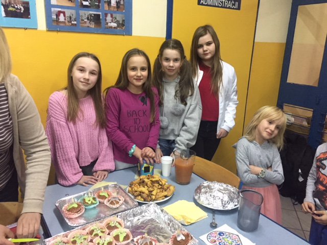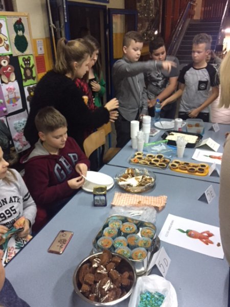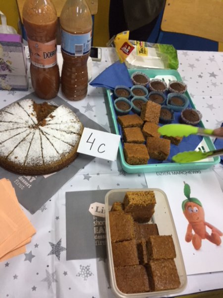 Klasy młodsze obchodziły dziś Dzień marchewki. Podczas zabawy andrzejkowej klasy czwarte i piąte przygotowały bogatą ofertę marchewkowych wypieków. Mogliśmy smakować ciasta, ciasteczka, rogaliki i babeczki z wróżbami. Propozycji było co niemiara. Dziękujemy rodzicom za pomoc w organizacji „marchewkowej zabawy”. Wyniki konkursu ogłoszone zostaną na apelu podsumowującym semestr.