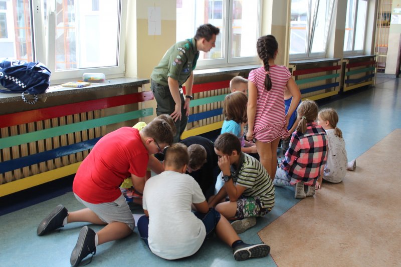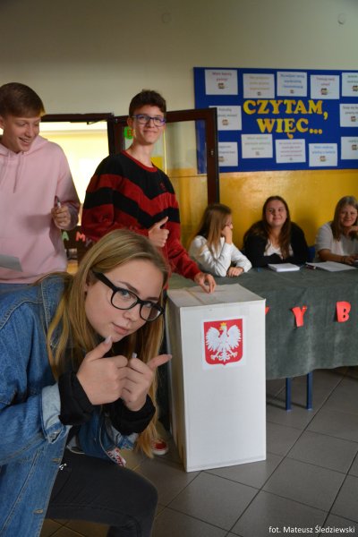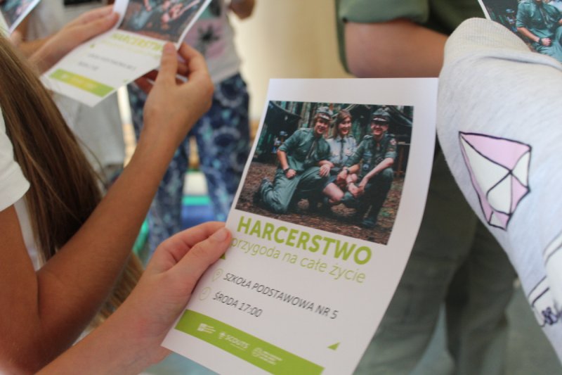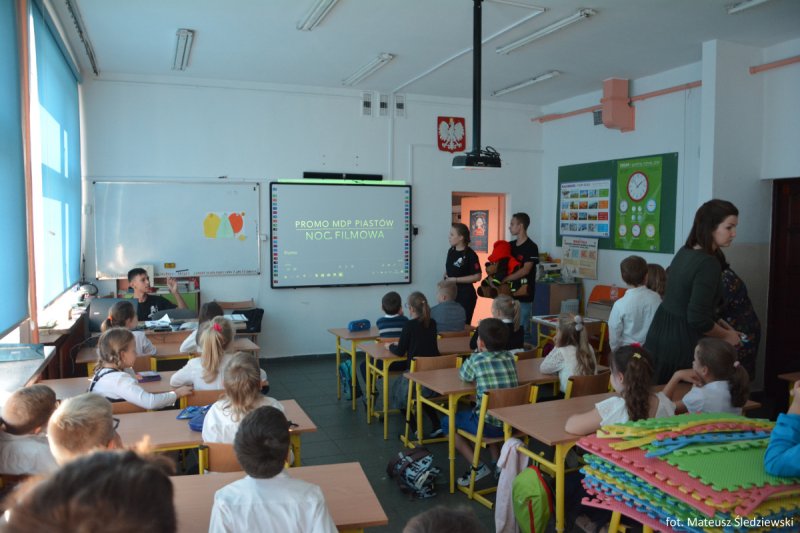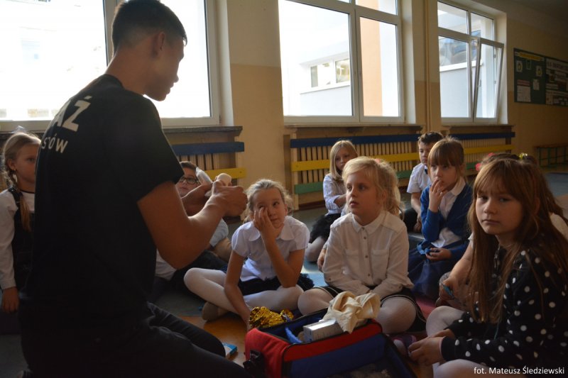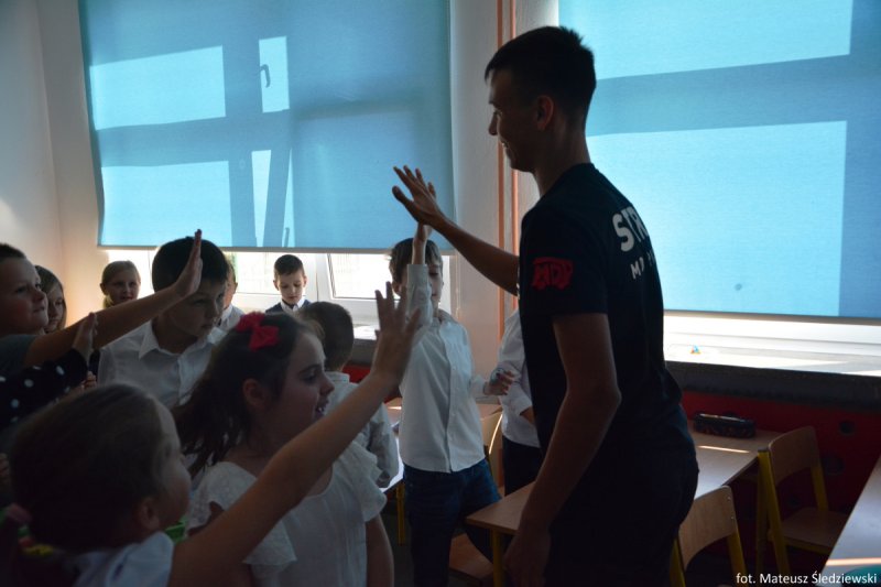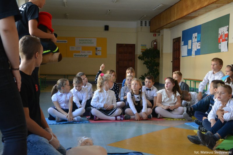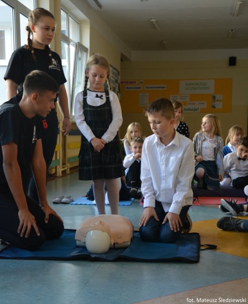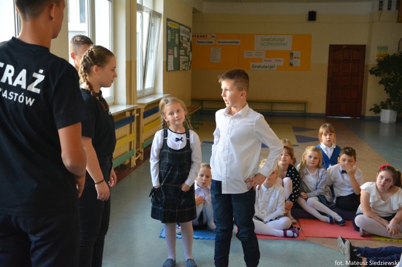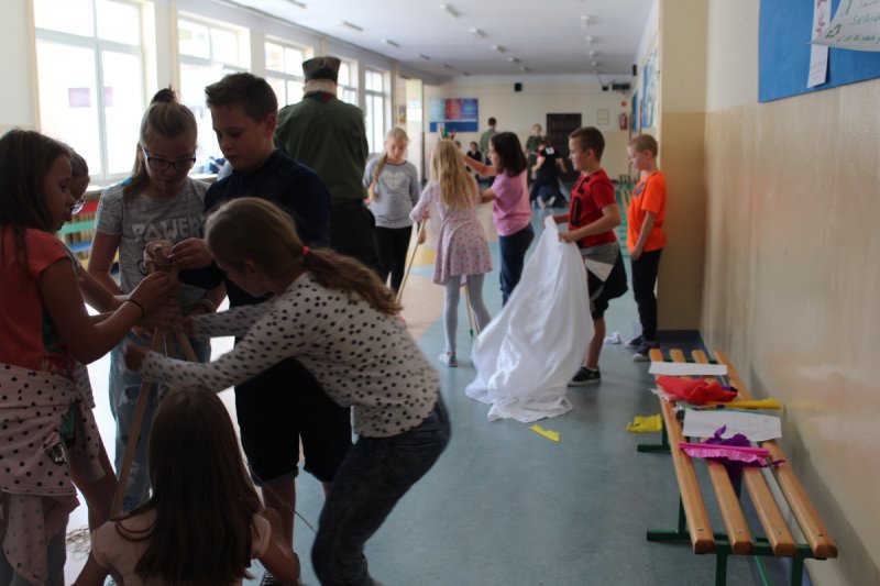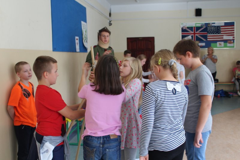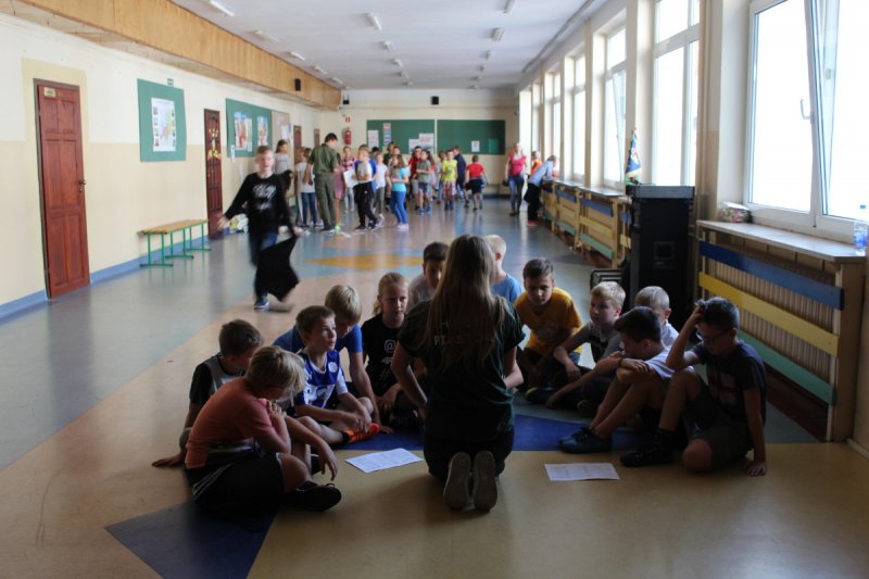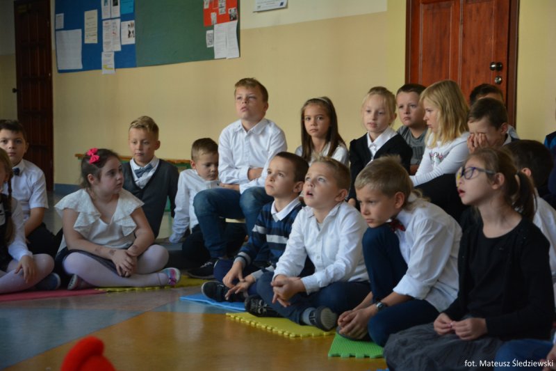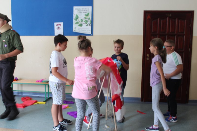 Uczniowie i nauczyciele Szkoły Podstawowej nr 5 im. Zbigniewa Gęsickiego „Juno”, w ramach obchodów 100. Niepodległości