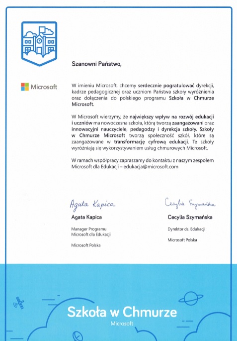 Za wieloletnie, systematyczne i aktywne działania podejmowane na rzecz zdrowia w październiku 2019 r. Pani Dyrektor Anita Chojnowska z rąk Mazowieckiego Kuratora Oświaty odebrała Krajowy Certyfikat Szkoły Promującej Zdrowie.