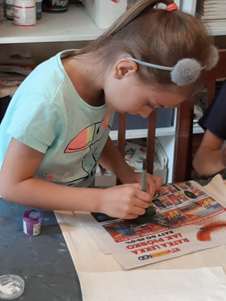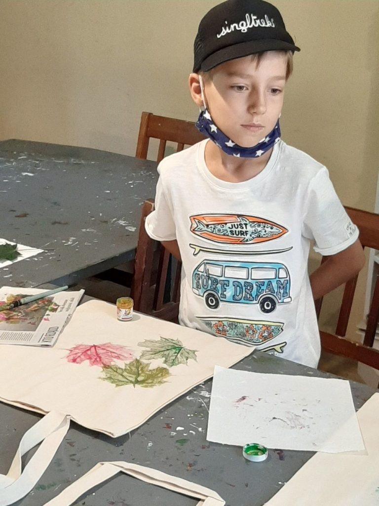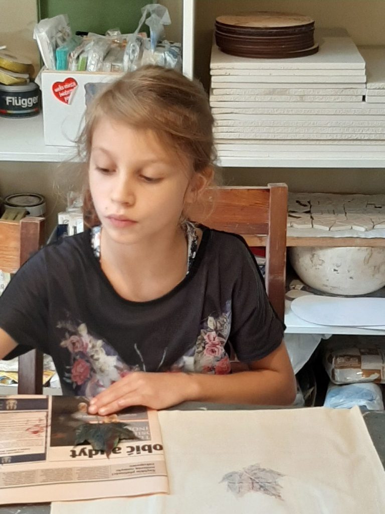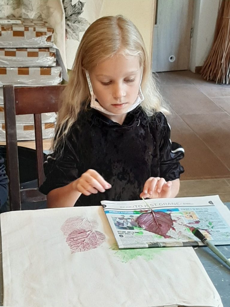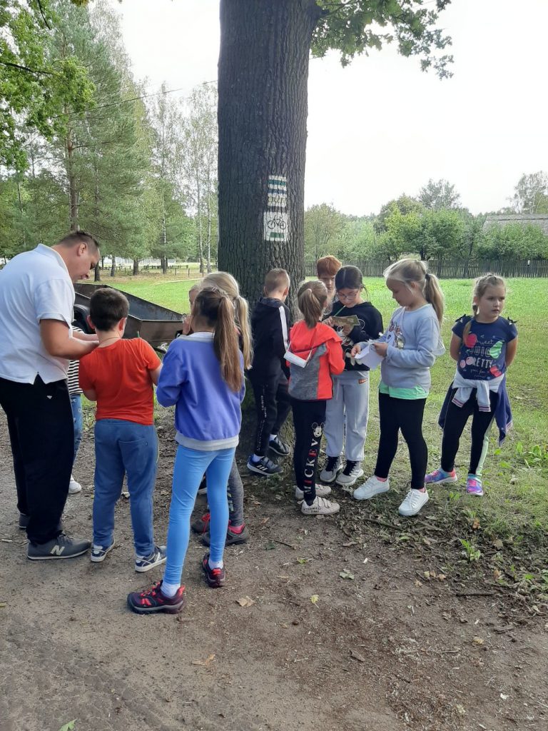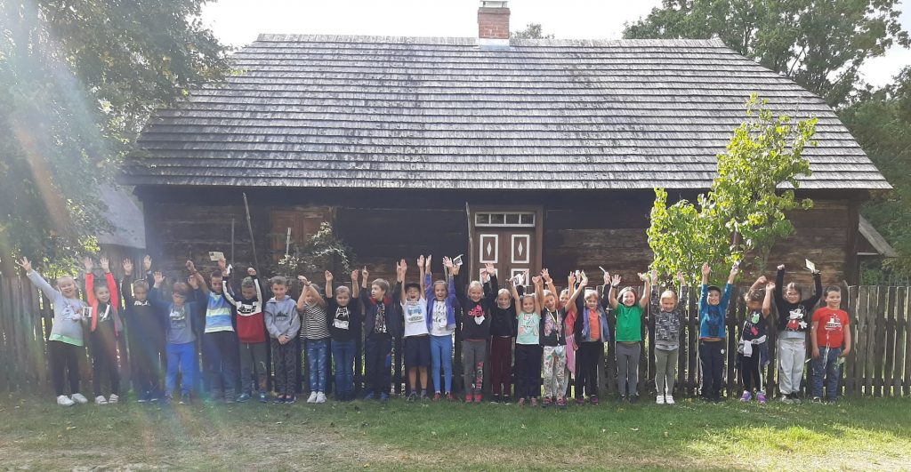 10 września, w czwartek klasa 2 c wybrała się na wycieczkę do Domu Pracy Twórczej w Kampinoskim Parku Narodowym, na warsztaty z frotażu.( Frottage – technika odciskania dowolnych przedmiotów o fakturalnie ukształtowanych powierzchniach w celu uzyskania dokładnego odwzorowania ich struktury np liści, na powierzchni papieru lub płótna. ) Pierwsza grupa udała się na warsztaty, dzieci malowały spód liścia farbami do płótna, za pomocą pędzelka, a następnie na bawełnianej torbie odbijały jego strukturę. Podczas tego warsztatu uczniowie poznali różne rodzaje liści, dopasowując je do gatunków drzew, krzewów i kwiatów. Druga grupa, wraz z przewodnikiem wybrała się na Spacer po KPN, żeby zwiedzić : wydmy, Obszar Ochrony Ścisłej „Granica”, skansen. Zadaniem dzieci było zapamiętać wszystkie szczegóły w danym obiekcie. Na koniec cała klasa, podzielona za 4 zespoły, brała udział w grze plenerowej ” Piękno ukryte w szczególe ” . Każda grupa otrzymała po 6 zdjęć z elementami zwiedzanych wcześniej obiektów , które należało odszukać i wypisać dokładną nazwę na specjalnej mapie. Świetna zabawa i nauka, wrócimy tam z pewnością 🙂