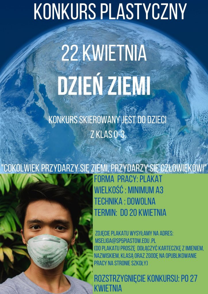 „Zapraszam do udziału w konkursie plastycznym związanym ze zbliżającym się „Dniem Ziemi”.