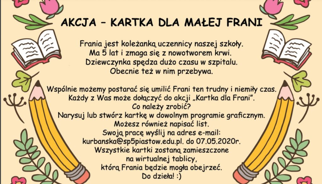 Dołącz i Ty! Zrób kartkę i prześlij na maila: lkaczor@sp5piastow.edu.pl