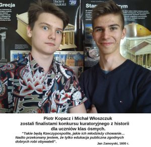 Do eliminacji stołecznych jury zakwalifikowało Monikę Tusiewicz kl. 3 gim. oraz Jakuba Moczarskiego z kl. 5 sp.