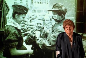 „Czy na tym zdjęciu z powstania to Pani, jak zwykle uśmiechnięta? Między dwoma chłopcami, jeden z opatrunkiem na oku.