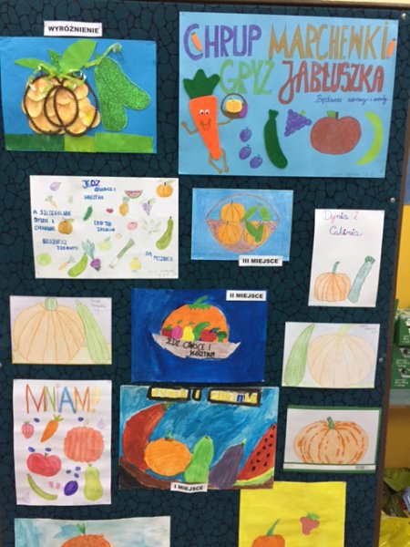 Klasy czwarte w ramach szkolnego projektu zdrowotnego „Ćwicz i jedz dla zdrowia” wzięły udział w konkursie plastycznym pt. „Dynia i cukinia”. Jury, w składzie: P. Agata Żukowska, P. Elżbieta Jarosińska-Fogo i P. Lidia Kaczor, przyznało nagrody i wyróżnienia.