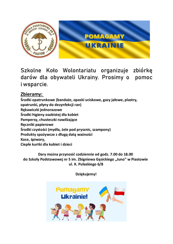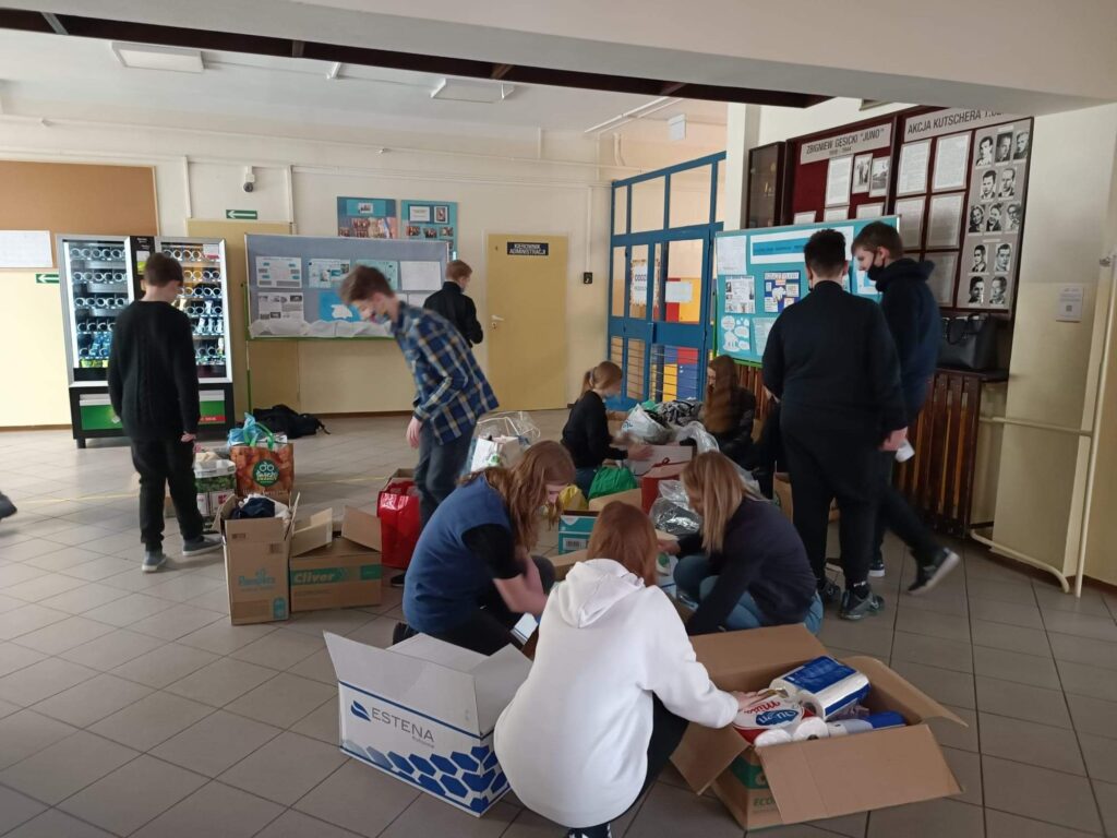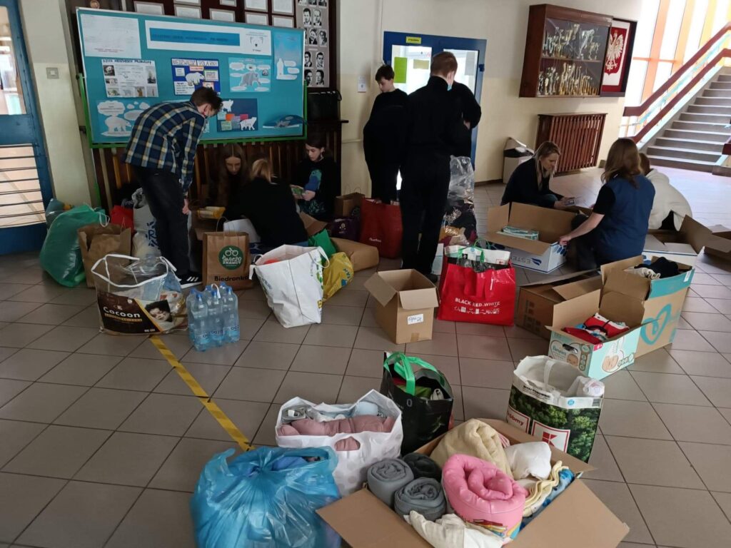 za wszystkie przyniesione do szkoły rzeczy, które zbieramy, aby pomagać Ukraińcom. To dzięki Wam mogliśmy przekazać je dalej. Większość z nich została dołączona do innych zbiórek i pojechała w różne strony Ukrainy.
