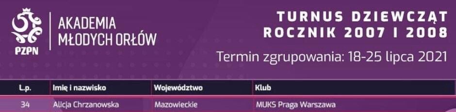 Alicja Chrzanowska, uczennica klasy 8D, otrzymała powołanie na obóz – Letnia Akademia Młodych Orłów, organizowany przez Polski Związek Piłki Nożnej dla najbardziej utalentowanych dziewcząt z Polski w rocznikach 2007 i 2008. GRATULACJE! 💪😊