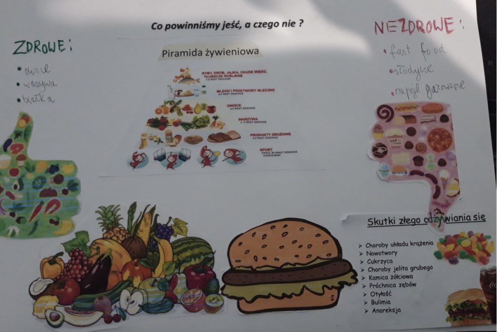 Klasa IVc (wych. Artur Tykwiński) przygotowała materiały dotyczące otyłości, choroby, z którą zmierza się coraz więcej dzieci. Dodatkowo lekcja wychowawcza na ten temat pogłębiła wiedzę uczniów na temat przyczyn, skutków i sposobów radzenia sobie i przeciwdziałania tej groźnej chorobie.