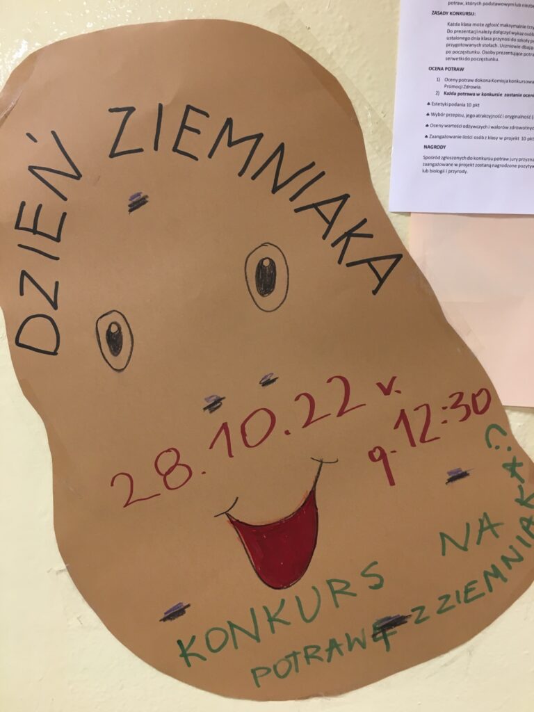 📣 Zespół Promocji Zdrowia zorganizował konkurs dla klas na najciekawszą i najsmaczniejszą potrawę z ziemniaka🥔. 28 października na długiej przerwie uczniowie i nauczyciele mieli możliwość degustowania i podziwiania potraw, których różnorodność i pomysłowość przeszła nasze najśmielsze oczekiwania. Okazało się, że ziemniak jest produktem o nieograniczonych możliwościach kulinarnych. Smakowaliśmy ziemniaka na słodko, słono, w zapiekance, sałatce, cieście i plackach.