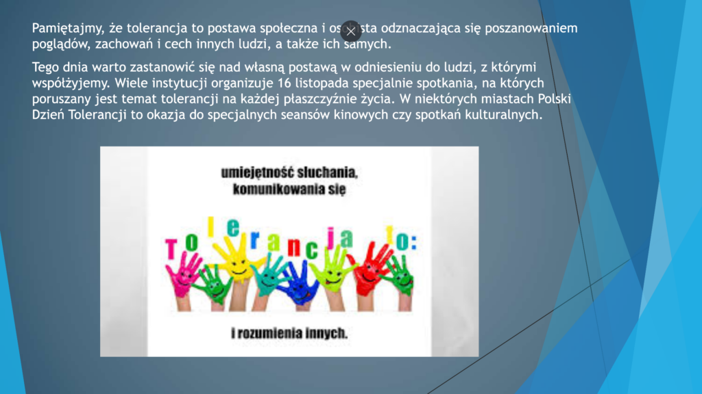 Dnia 15.11 klasa 2b obchodziła Międzynarodowy Dzień Niewidomych oraz Dzień Tolerancji. Dzięki naszej szkolnej pielęgniarce – p. Sylwii Krysiak poznaliśmy sposoby dbania o nasze oczy i wzrok. Po bardzo pouczającej pogadance, obejrzeliśmy filmiki: „N jak niewidomy” oraz „Integracja – osoby z niepełnosprawnością wzrokową”, dzięki którym dowiedzieliśmy się, jak funkcjonują osoby niewidome oraz w jaki sposób możemy im pomóc. Następnie poprzez kilka ćwiczeń „weszliśmy” w ich świat, który nie jest prosty.