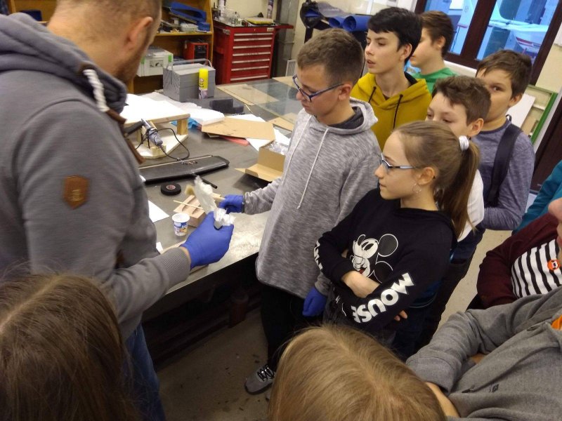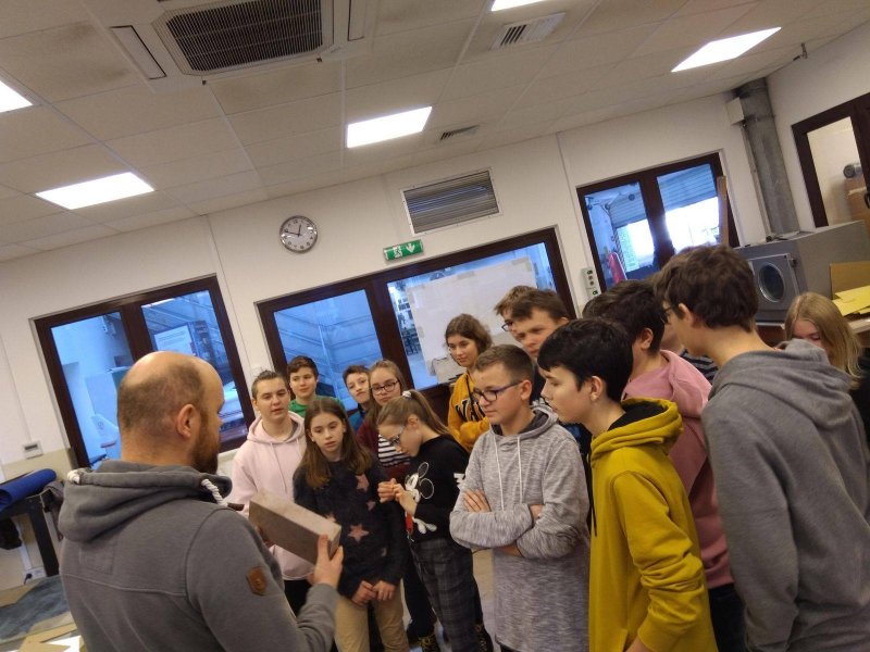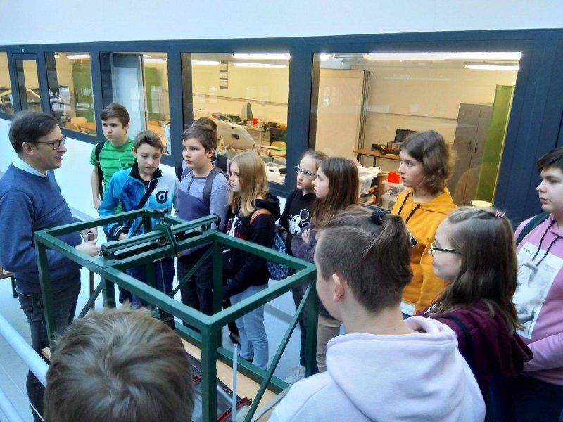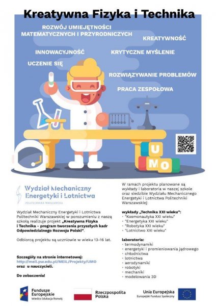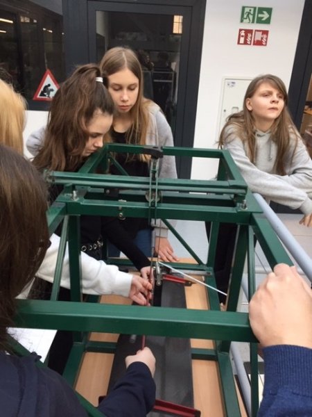 wraz z wychowawcami p. Joanna Brzozowska i p. Lidią Kaczor oraz p. Marzeną Długołęcką, w ramach projektu „Kreatywna Fizyka i Technika – program tworzenia przyszłych kadr Odpowiedzialnego Rozwoju Polski”, uczestniczyły w zajęciach na Wydziale Mechanicznym Energetyki i Lotnictwa Politechniki Warszawskiej.